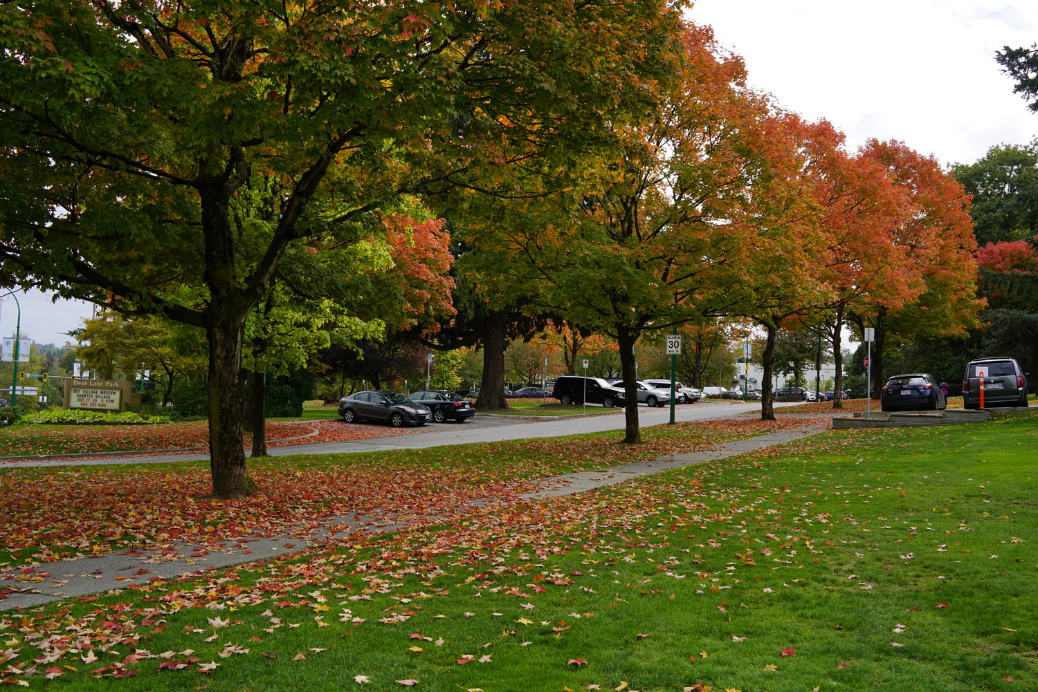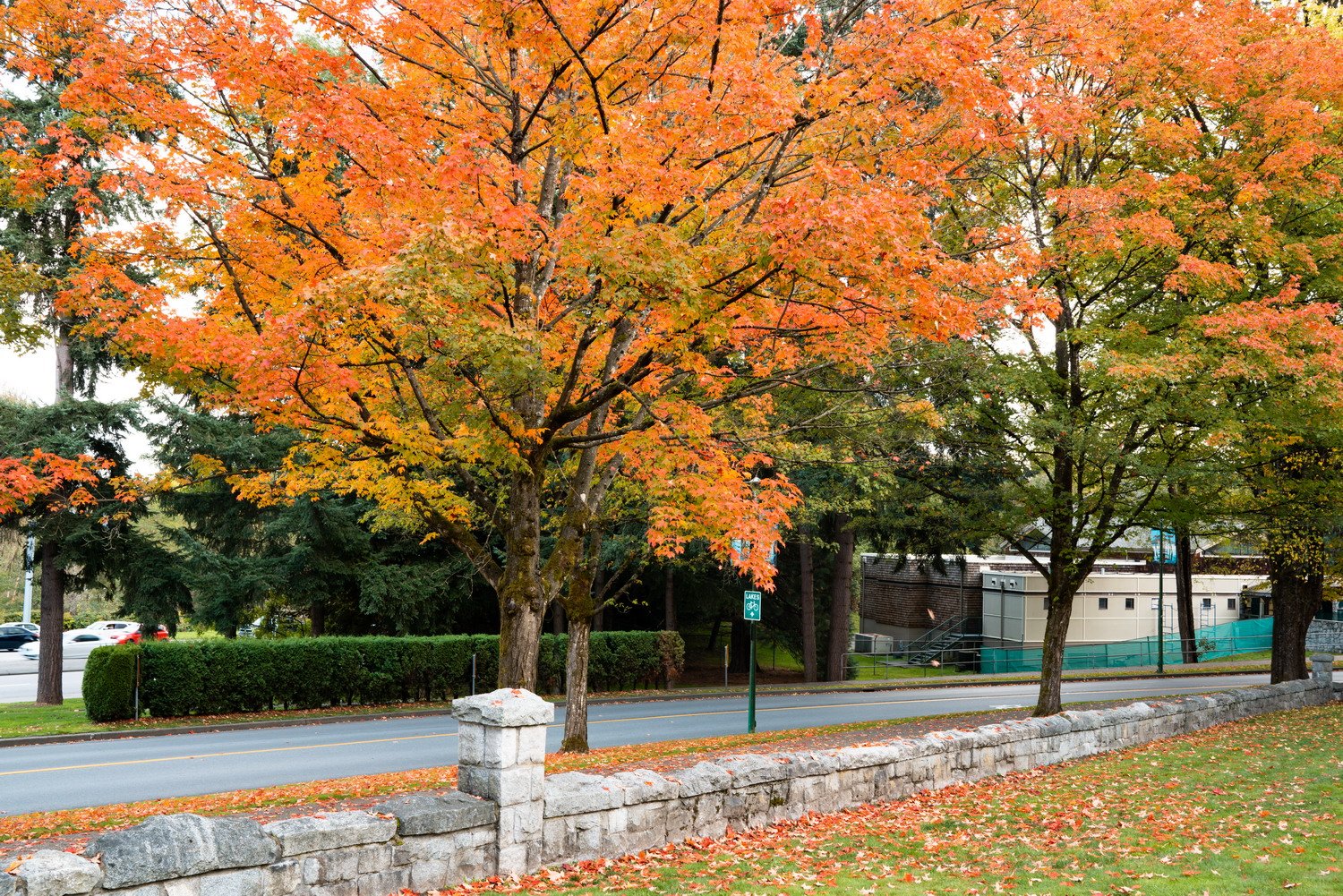Deer Lake Park is situated in a peaceful natural environment that serves as the cultural precinct for the City of Burnaby’s arts and heritage amenities. In this area, maple trees are typically in peak color change during mid to late September or early October.