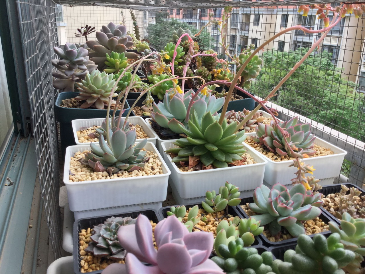 我曾经在国内就特别喜欢种多肉植物,自从2013年我掉入多肉肉坑以来就不断的买买买,尝试种植过各种品种多肉植物(景天科、番杏科和十二卷都有种植过)。在国内的南方地处两广地区,冬季特别适合多肉的生长,但是到了漫长的夏季,炎热高温高湿,导致了多肉出现各种问题,简直就是多肉植物的末日,每年夏季总有那么几颗挺不过去。以下一些图片是我在国内冬季多肉疯涨期拍摄的各种爆盆照片: